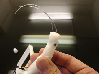 5) Prenez un morceau de votre filament de 3 mm, Poussez-le dans le trou en assemblant les phalanges 1 et 2 et ensuite le bout de doigt.