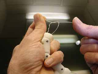 Enroulez un peu le doigt et faites quelques nœuds entre les deux fils.