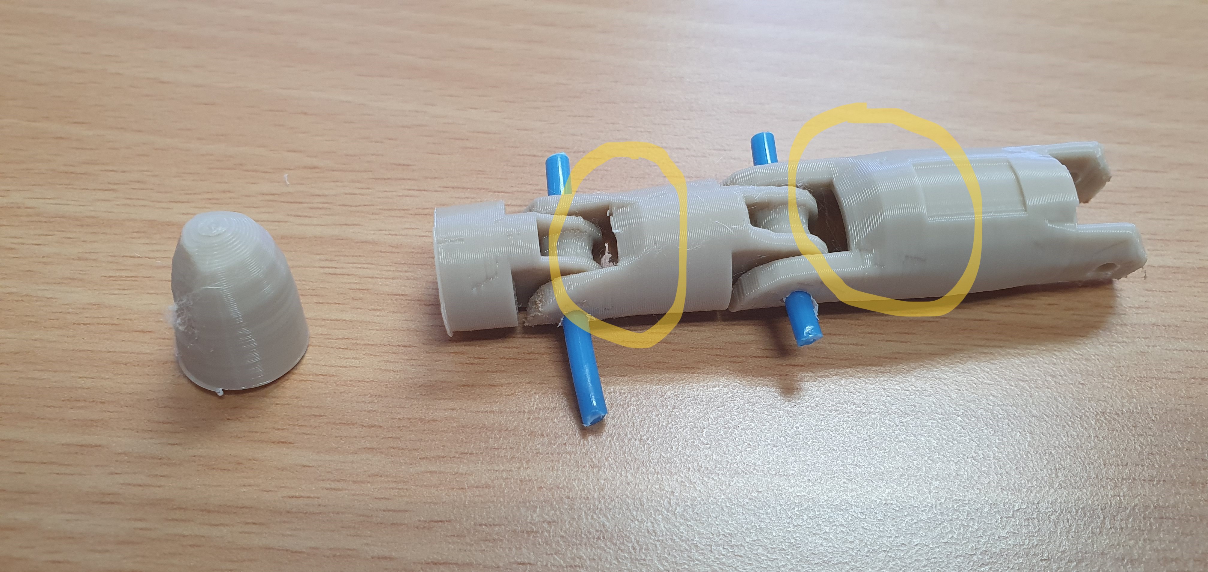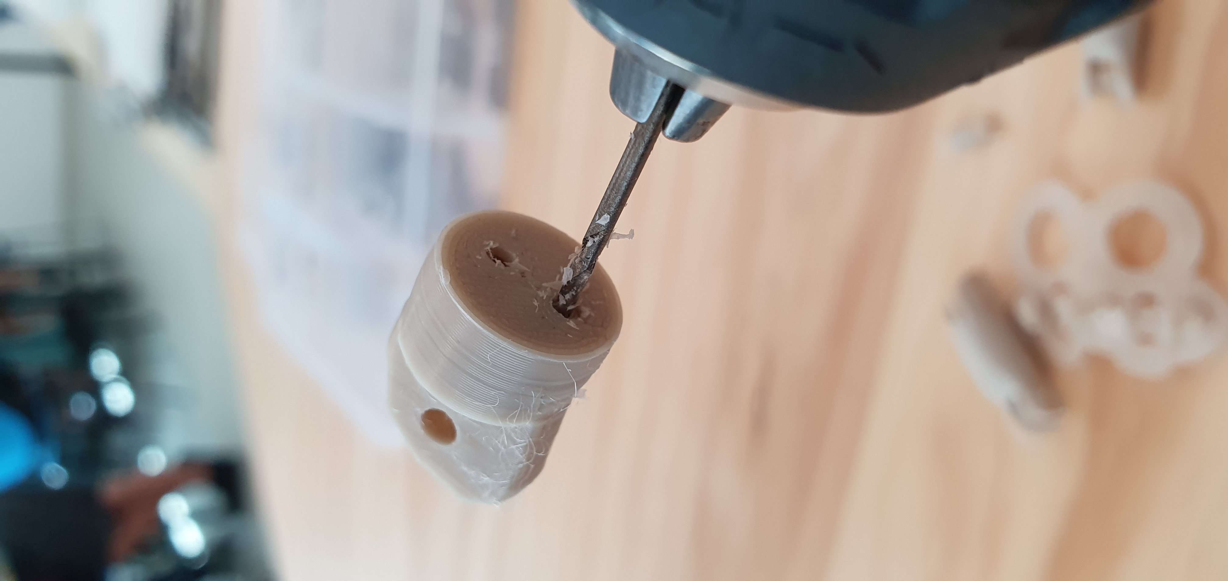 3) Les trous intérieurs de la charnière du bout du doigt doit peut être repercé à 1.5 mm ou 2mm