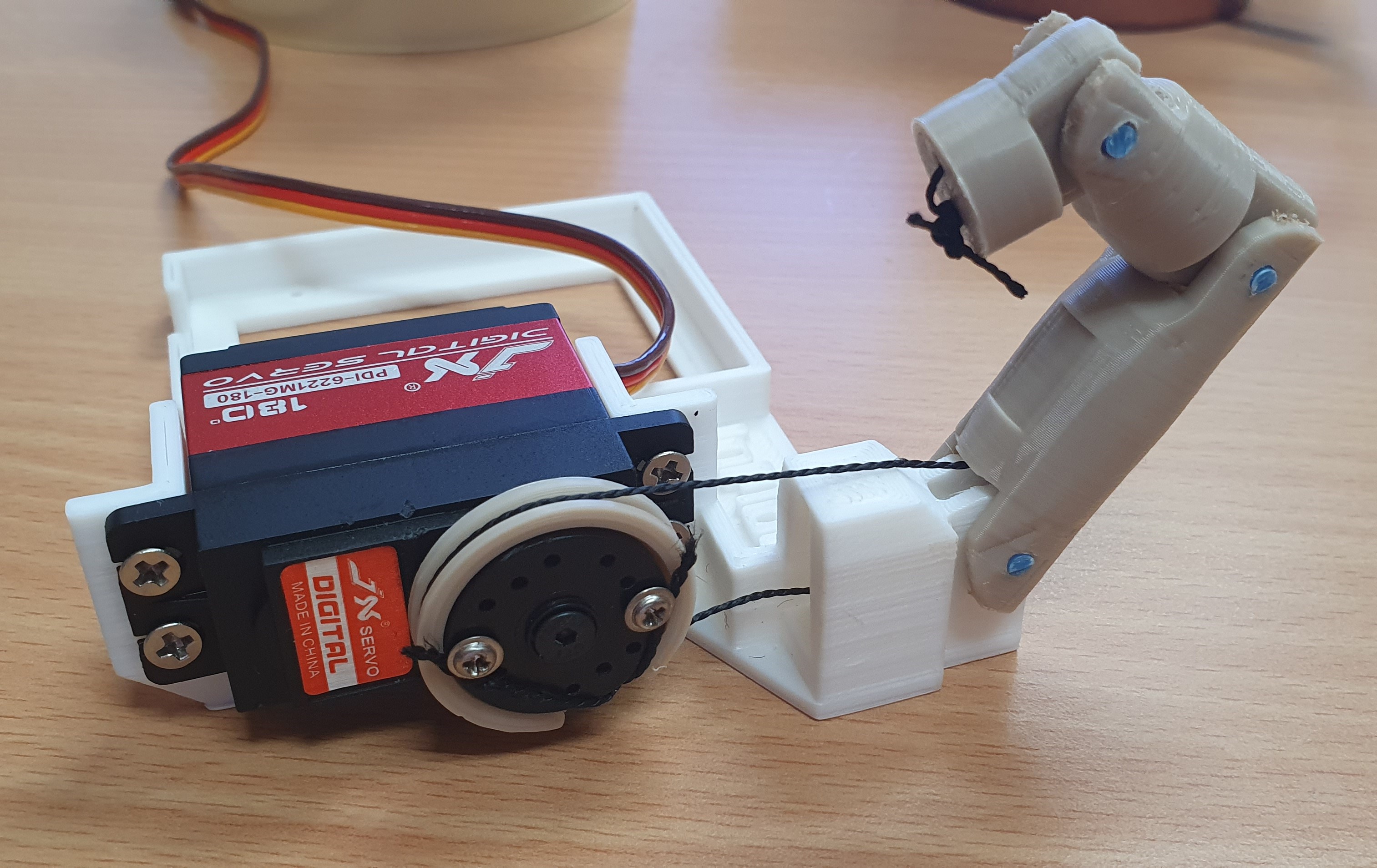 Vous allez assembler votre doigt sur un petit servo moteur et l'installer sur un support test.