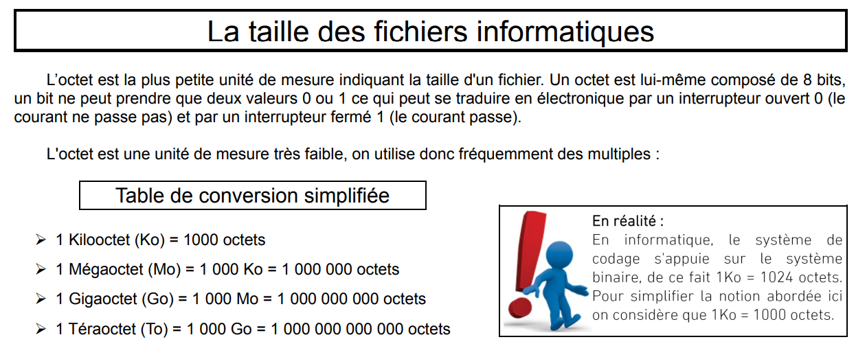 - utilise le tableau de conversion pour mieux comprendre la taille de des fichiers et applique là aux fichiers télécharger.
