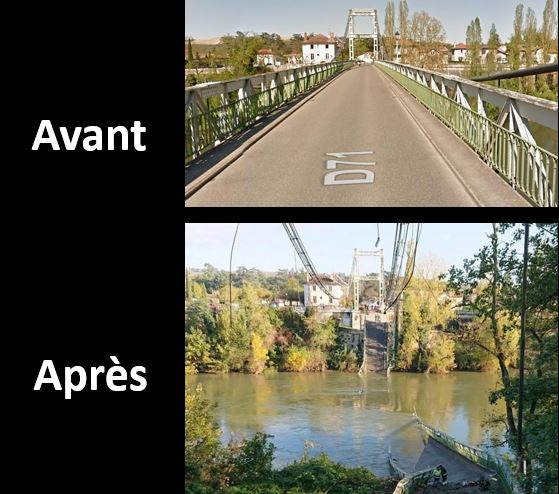 Analyse de la catastrophe de Mirepoix : rupture des câbles d'acier face au tablier de béton.